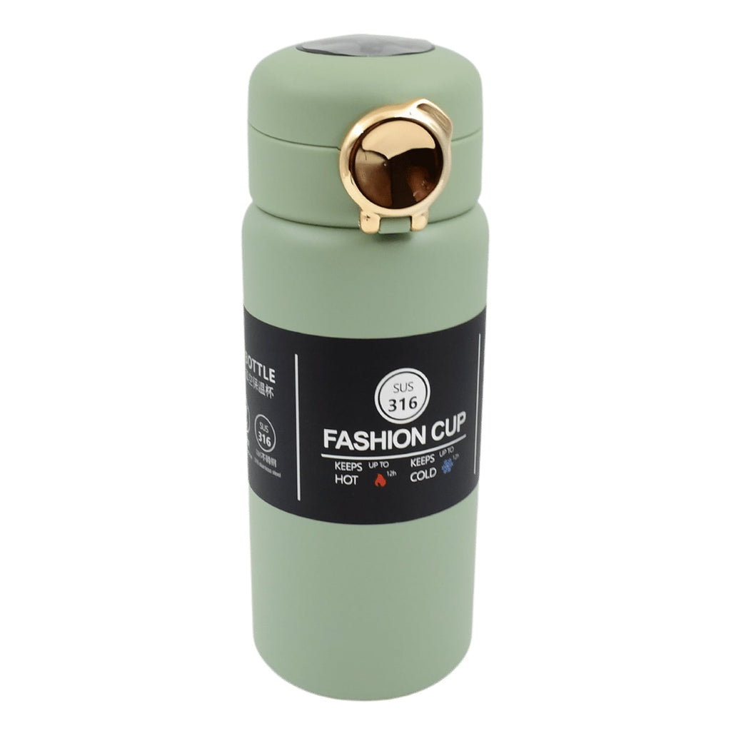 Thermos steel Bottle, 450 ML, Push Button | Fashion cup Temperature Display Bottle | Easy to Carry | Rust & Leak Proof Tea Coffee Office Gym Home Kitchen Hiking Trekking Travel Bottle (450 ML)