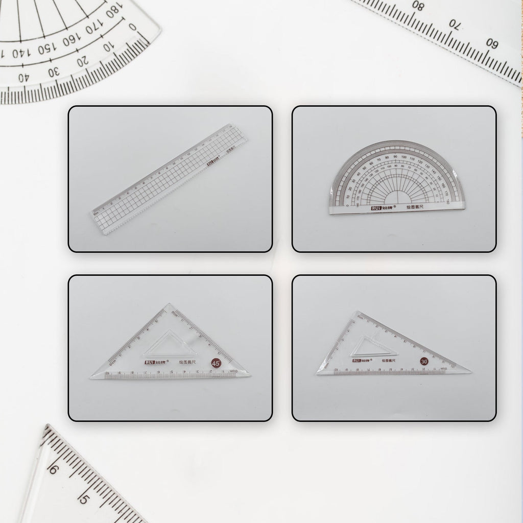 7914 4pcs Ruler Suit Stationery Set for School Student Office ,Draft Rulers for School Office Supplies and Supplies-High School