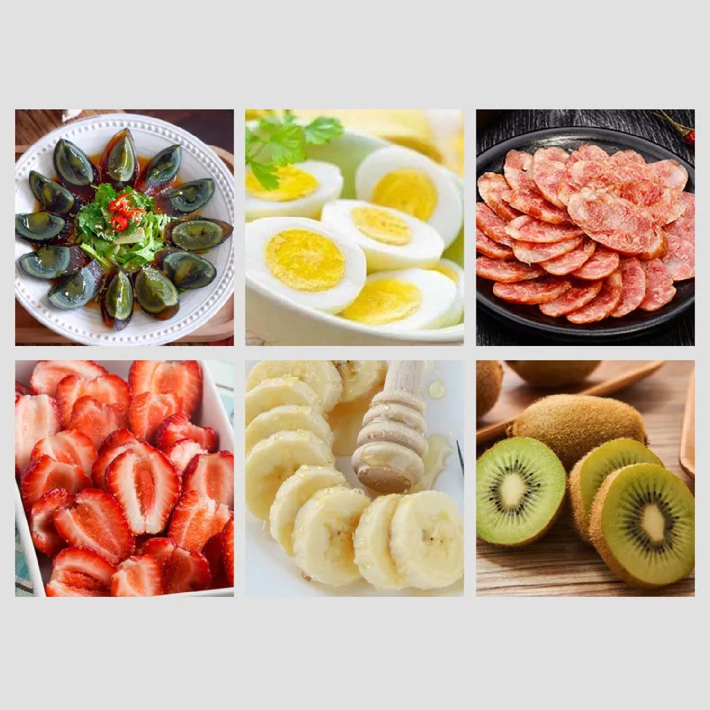 • 3-in-1 Slicer The slicer can easily cut evenly into three various shapes, and rape cutter also suitable for cutting soft foods or fruits, such as strawberry, banana, mushroom, etc.