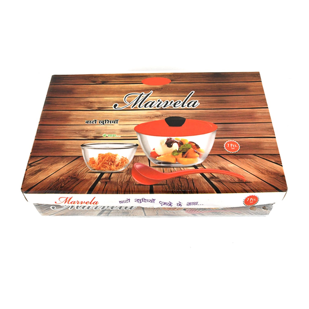 - dinner set come with 4 Medium bowls, 1 Big Bowl With 1 Lid,1 Serving Spoon with Color Box.