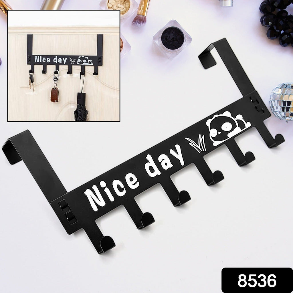 8536 Heavy-Duty Carbon Steel Cartoon Nice Day Over Door Hook Hanger Rack, Towel Hanger, Removable Door Hook, Coat, Scarf, Cloths Hanger (1 pc / 6 Hook)