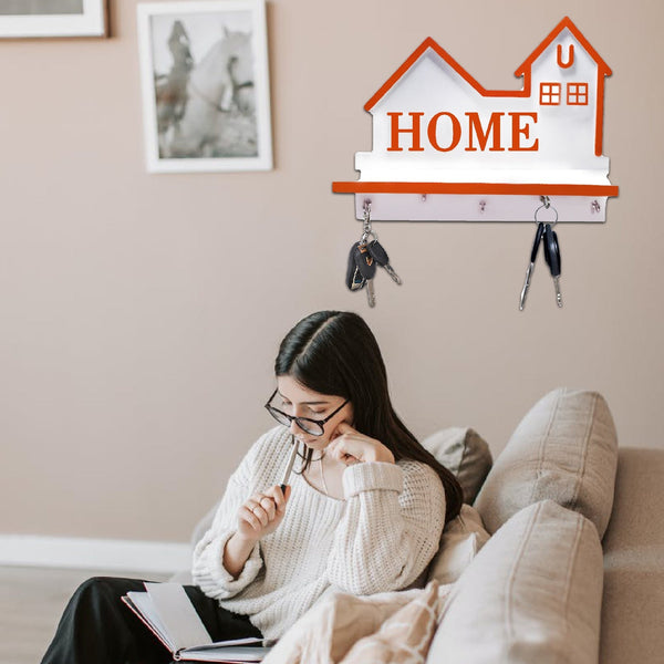 Multipurpose Plastic Sweet Home 5 Hooks Key Holder with Mobile Stand ?? This Wall Product is made by wooden Ethnic Designs .A compact wall shelf with key holder ideal to be placed in the entry...