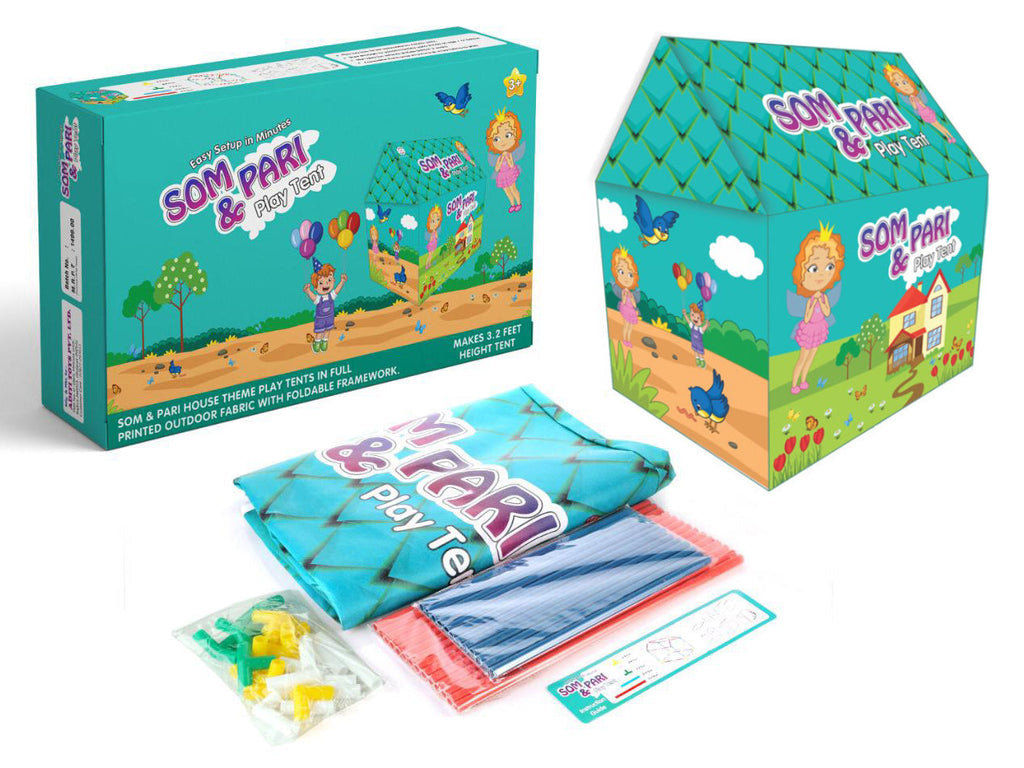 House Theme Play Tents Printed Outdoor Fabric with Foldable Framework (Multicolor)