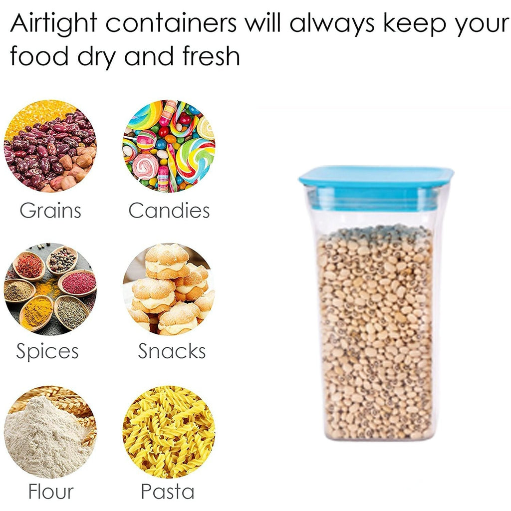 Perfect for storing, flour, rice, beans, pasta, nuts, dried fruits, cereal, seeds, protein powders, sugar, coffee beans, mirch powder, crackers, chips, pretzels, popcorn, quinoa, candy, cookies, tea, chocolate chips, grains, granola, coconut, pancake mix, salt, marshmallows, oats and more!