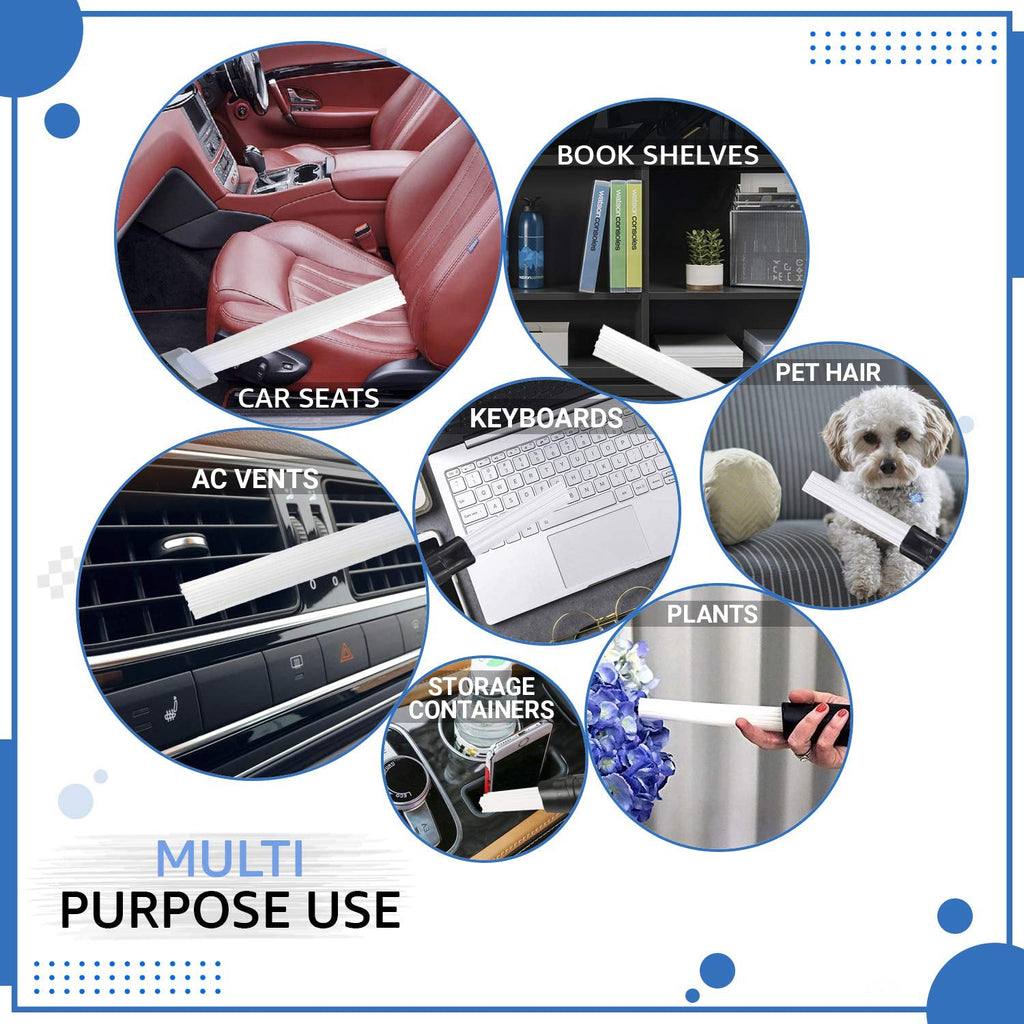 • It can be used to clean air conditioning vents in homes and cars, storage containers, makeup organizers, tool boxes, window tracks and blinds, kitchen drawers, keyboards, cutlery holders, trays, plants, lighting fixtures, sofas, couches, book shelves and jewellery boxes and much more where normal vacuum cleaner accessories cannot.