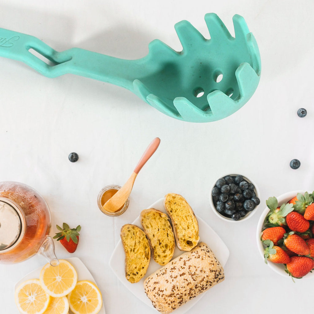 8537 Premium XL Silicone Pasta Fork, High Heat-Resistant to 600°F, Hygienic One Piece Design, Spaghetti Strainer & Server Spoon