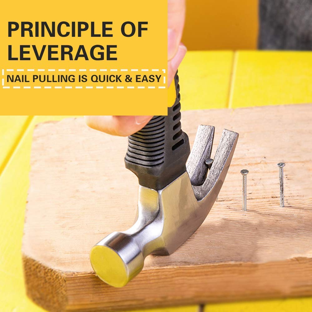 Portable The claw hammer is compact with only 16 cm length, which is convenient to carry out. Humanized handle The claw hammer is designed with humanized handle, which covered with TPR plastic material and shaped in finger holding grooves. The claw hammer handle owns good shock-proof ability, comfortable holding feeling and wonderful anti-slipping effect. The head part of the handle has been strengthened to solid the connection. Durable The claw hammer adopts high quality high carbon steel, which is wear resistant, hardness, anti-rust and durable, Hathodi